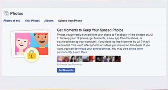 Gần đây Facebook thông báo sẽ xóa dữ liệu tất cả những hình ảnh đã Synced từ điện thoại lên Facebook. Thay vào đó, người dùng sẽ phai rtải một ứng dụng mang tên Moments để chuyển những hình ảnh đã Synced về máy tính lưu trên ứng dụng này